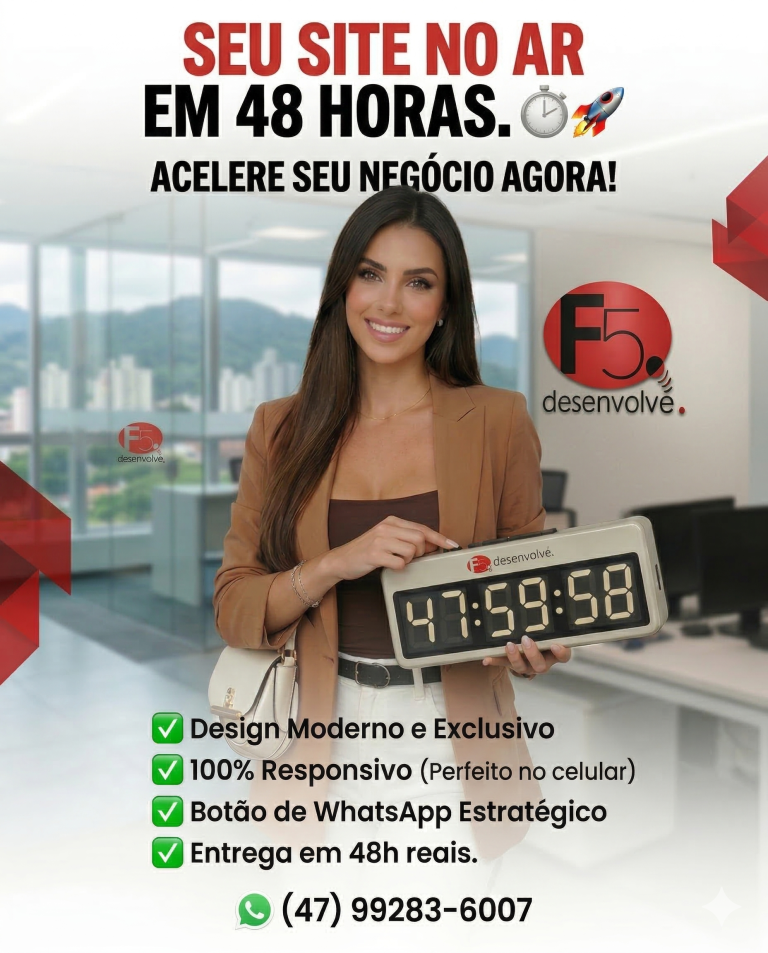 Na F5 Desenvolve, unimos tecnologia e estratégia para acelerar o crescimento de empresas no mundo digital. Criamos sistemas personalizados, sites profissionais, automações e soluções em marketing digital focadas em resultados reais. Nosso compromisso é entregar inovação, eficiência e performance para transformar ideias em negócios de sucesso.